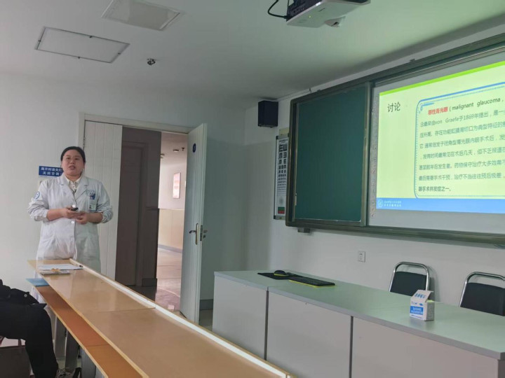 随后,任姗姗医生分享了《恶性青光眼的手术治疗1例报告》。她以临床实践为基础,详细介绍了恶性青光眼的诊疗思路和手术方案选择。通过具体病例的剖析,展示了手术治疗的完整过程和注意事项,为与会者提供了宝贵的临床经验。